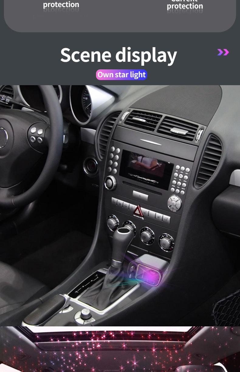 Starlight in Roof Retractable Charger with Lightning Cable, Dual Charge Port , -Automotive 4-In-1 Car Charger